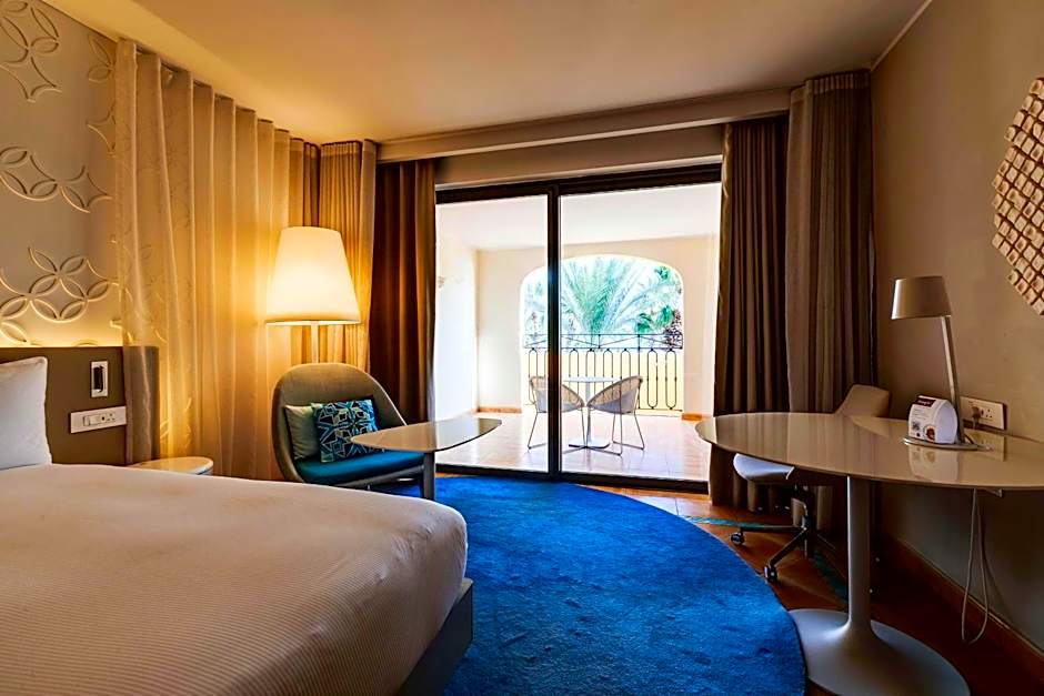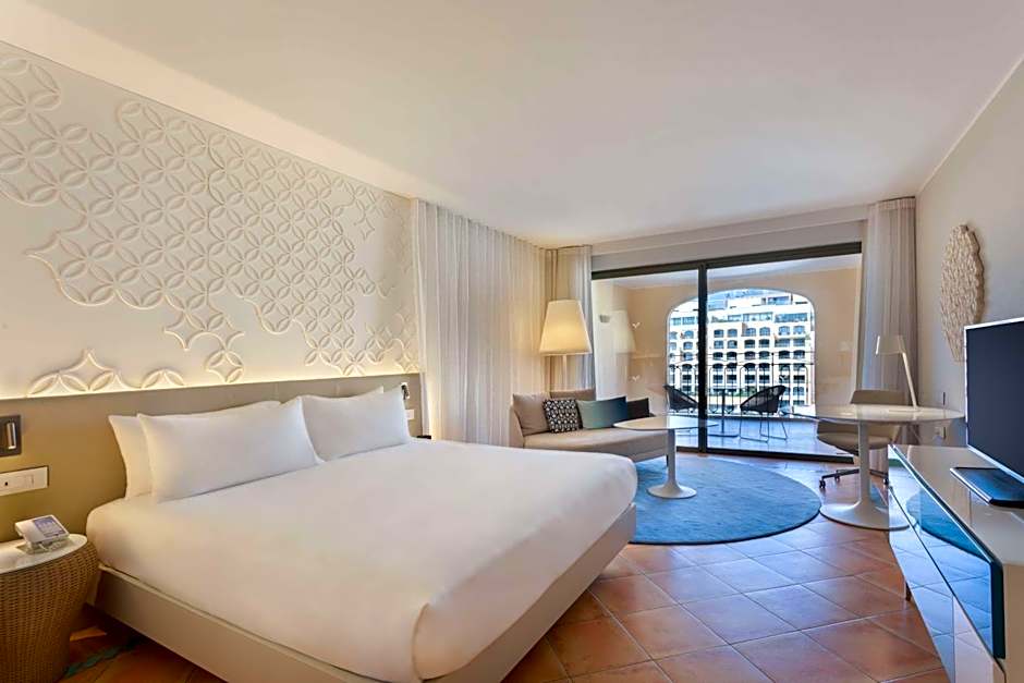 This large air-conditioned room offers a balcony with views of the Mediterranean Sea and a 43inch LED TV. It has a Serenity bed, and the spacious bathroom features bathrobes and slippers. Different styles of this room are available, allocation depending on availability.
