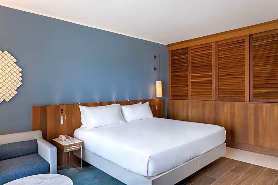 Offers a balcony with views of the Mediterranean Sea and a king-sized Serenity bed. Features a separate living and dining area, Mediterranean décors, and an private bathroom with shower and bath.